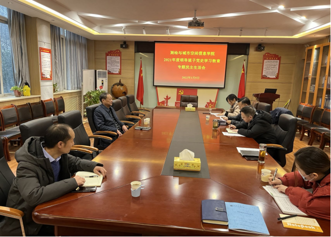 (通讯员:胡小光 任昭荣)2022年1月5日上午,测绘与城市空间信息学院在5号楼B209会议室召开党史学习教育专题民主生活会。副校长贺国营、校纪检监察干部杨国洲、学院领导班子成员参加会议。会议由学院党委书记米启超主持。