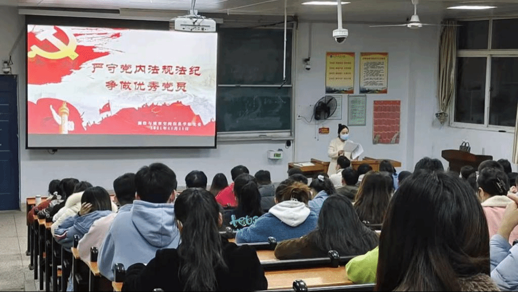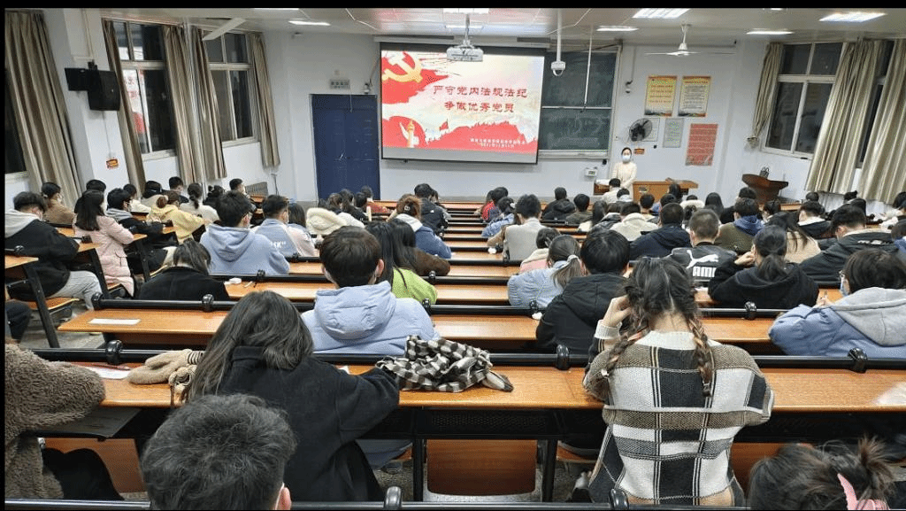 通讯员:任昭荣 蒋永泰为深入学习习近平新时代中国特色社会主义思想和党的十九大及十九届二中、三中、四中、五中、六中全会精神,深入贯彻习近平法治思想,加强对我院学生党员的教育管理,增强党员队伍的先进性和纯洁性,进一步提高党员素养,我院召开了一场“严守党规党纪 争做优秀党员”为主题的党员大会。此次会议于11月11日晚在5#C114圆满落下帷幕。我院党委组织员任昭荣,支部书记郭军学老师、支部委员李丹老师以及全体学生党员参加本次会议。
