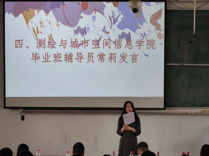 会议伊始,院长高松峰对即将毕业的同学们表示祝贺和不舍,并激励大家走出校园后,继续秉承“厚德唯实、博学慎思”校训,弘扬“自强不息,追求卓越”的城建精神,在新的征程中不忘初心,砥砺前进,肩负起社会主义建设者和接班人的使命担当,实现人生的目标与理想。 随后党委副书记卫柳艳就毕业生离校工作做出详细的讲解,要求大家站好最后“一班岗”,既是为学院贡献出最后的一份力量,也是为自己负责;副院长潘传姣就完善毕业设计相关资料强调,毕业设计等资料马虎不得,一定要认真对待;2017级辅导员常莉鼓励同学们要有明确的奋斗目标、持之以恒的毅力以及坚定不移的信心,并祝福和勉励本届毕业生在新的征程中不断突破自我;为保障毕业生安全顺利、通畅便捷离校,辅导员李方圆、李丹、胡小光对毕业生生源地助学贷款、党团关系转接、毕业生离宿程序、报到证办理及注意事项等各项毕业工作都做出了明确安排。最后,由党委书记米启超总结会议精神,他殷切希望2017级毕业生都可以找寻到属于自己的道路,不断向前探索,不断向上攀登,努力奋斗出属于自己的精彩人生!