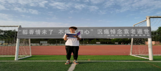 (通讯员:李方圆 李飞翔)据央视新闻5月22日报道,“杂交水稻之父”、中国工程院院士、“共和国勋章”获得者袁隆平于13时07分在湖南长沙逝世,享年91岁。我院为了培养当代大学生正确的价值观,增强大学生的爱国意识,弘扬为国家富强而奋斗的奉献精神。于5月24日在山顶操场举办了“稻香情未了,不悔是初心”悼念袁隆平院士逝世活动。