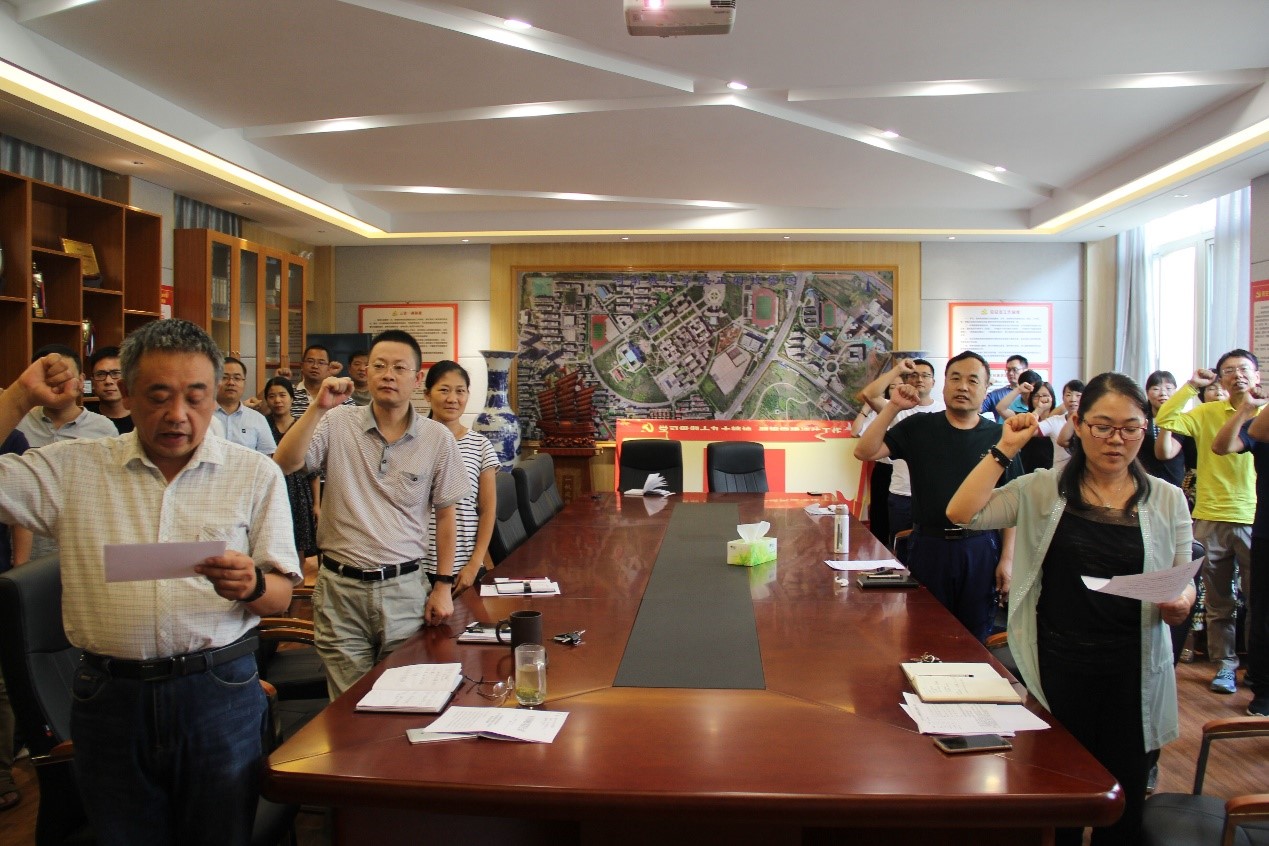 学习讲话后,党总支书记吕鹏飞和院长张宏敏带领全体教师进行宣誓,重温《河南教师誓词》。希望通过此次宣誓活动,使全体教职工进一步坚定理想信念,加强师德修养,严谨笃学,勤思善教,潜心钻研,以广博学识和宽阔视野,提高教书育人的本领。
