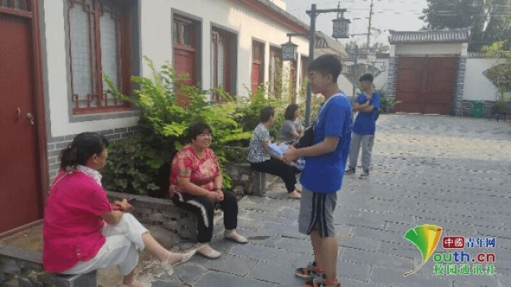 趁着落日余晖,团队成员走在街上,与乡里的百姓交谈甚欢。从家常小事到生活的方方面面无不涉及。通过一天的调查让成员深切感受到老人心中所想、心中所需。多数老人的子女外出打工,老人留在家中给子女照顾孩子,不拖累子女,能帮衬子女就尽力帮衬,但也正因为这样而忽略了自己的想法。见到老人们侃侃而谈,讲述着属于老人们的风华正茂,团队成员对老人的心理倍感深受:老人不只会照顾孩子,老人也有自己的想法和自己的生活,老人们也想趁自己还能动多出去走走,也想享受一下外面世界的繁荣昌盛。当代大学生能做的就是听老人们讲,与此同时把自己的所见所闻讲给老人们听,在聆听和讲解中发现新天地,找到更多关爱空巢老人的切入口,让空巢老人不再空虚,让空巢老人体会到不“空巢”的快乐。