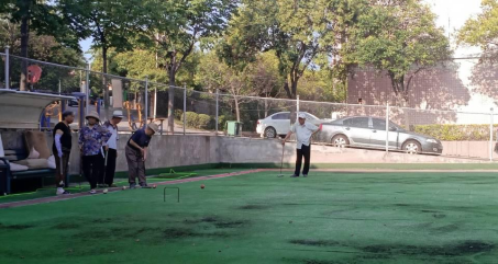 随后,服务团组织村民们开展“门球”娱乐活动,经过前期的宣传,村民们积极主动报名参与活动,一展风采,体验到文娱的乐趣,并对服务团表示衷心的感谢。
