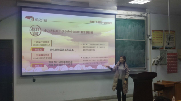 青马班的开班仪式由团学办主任许东辉发表开班词。全体老师和青马班成员为成功开班唱团歌。随后,由党总副书记魏柳燕授予班主任许东辉班旗,从而标志着开班仪式的圆满完成。许东辉主任上台讲话,表述了我院坚持用马克思主义中国化的最新成果武装青年,挖掘并打造更加优秀的青年知识分子的坚定信念,并表达了对各位同学深入学习、加强锻炼,成为中国特色社会主义事业合格建设者和可靠接班人热切期盼。最后,卫柳艳副书记上台围绕“十九届五中全会”进行了第一节理论知识的讲解。