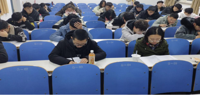 在开考前由竞赛组织人员进行考场整理布置、分卷等准备工作,以确保竞赛答题顺利进行。然后,各班参赛人员有序进场,在考试时间正式开始后,同学们开始认真答题,展现自己的实力,交上自己满意的答卷。