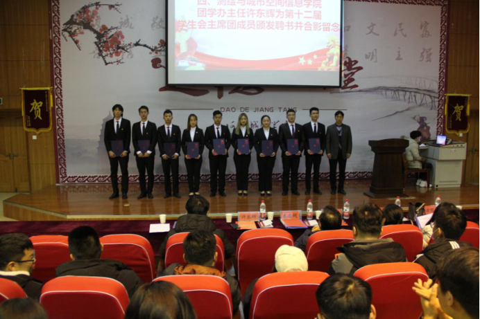 在会议上,第十二届学生会精心制作的换届视频作为会议的开头,使与会人员从悠扬的音乐和精致的画面中了解去年一年学生会的工作生活。之后,卫柳艳副书记致开幕词,发言中,她对第十二届学生会主席团的工作质量高度肯定,也对新一届主席团的发展寄予厚望。第十二届学生会主席黄力强也登台对过去一年的工作做了详细总结,由许东辉主任为第十二届学生会主席团成员颁发了聘书,常莉与李方圆老师为优秀部长、干事颁发证书。第十三届学生会主席徐玉可对新一届学生会工作做了规划与部署,并对未来目标做好了最详细的规划。最后,米启超书记发表总结讲话,祝愿测绘学院的师生越来越好。在美妙的校歌之中,换届大会圆满结束。