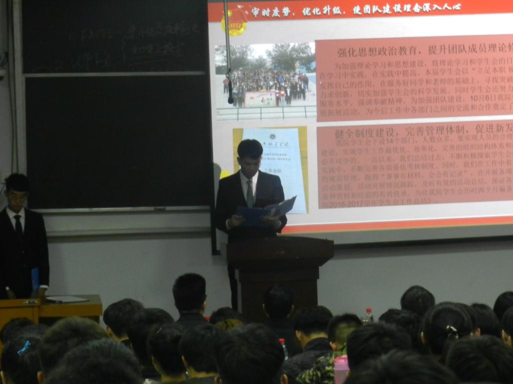 (通讯员:高广晨,刘昀昊)为了促进我院的全面发展、推动永利集团更好发展。2017年11月10日晚,我院第十届学生会双代会在五号楼316教室隆重举行。我院党支部书记吕鹏飞书记、团学办主任许东辉老师及其他团学办老师、全体学生会成员参加了这次会议,另外学校其他各学院学生会主席也应邀参加此次会议。