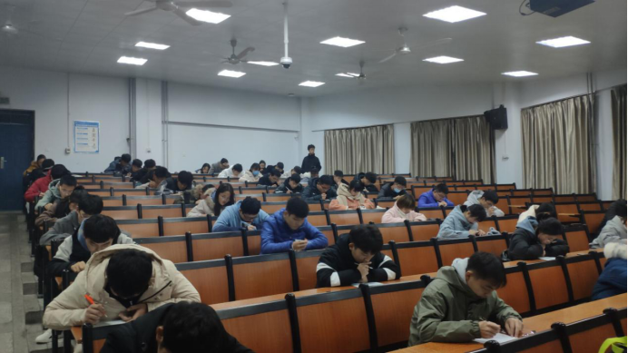 晚上6点,竞赛正式开始,同学们在监考人员的带领下有序落座。在监考人员分发完试卷后,同学们开始了答题。答题过程中,全场保持安静,同学们认真审题答题,心无旁骛,严格遵守考场纪律,在经过一段时间的准备,拿出自己的真本领,认真的完成每一道题。在允许的考试时间范围内,经过同学们的努力,陆续交出了令自己满意的答卷。