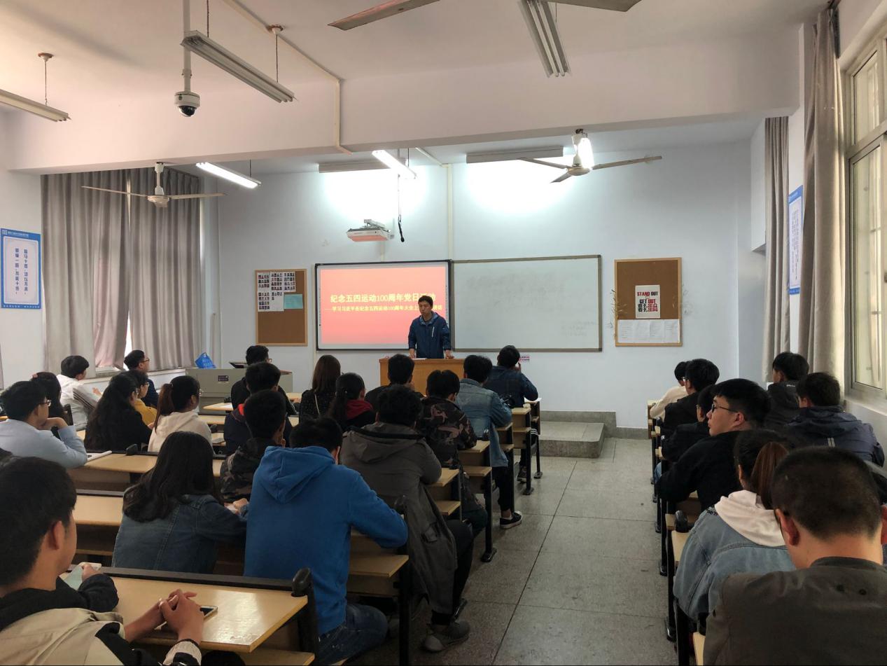 通讯员:许东辉 葛凯建)为深入学习习近平主席“纪念五四运动100周年”重要讲话,缅怀五四先驱崇高的爱国情怀和革命精神,并进一步激励和引领广大青少年大力弘扬以爱国主义为核心的伟大民族精神,我院于5月7日下午在五号教学楼110教室开展了以“纪念五四运动100周年”主题党日活动。参会人员包括yl7703永利集团学生各党支部书记、学生党员等。