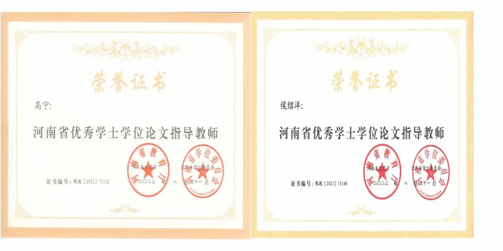 (河南省优秀学士学位论文指导教师荣誉证书)