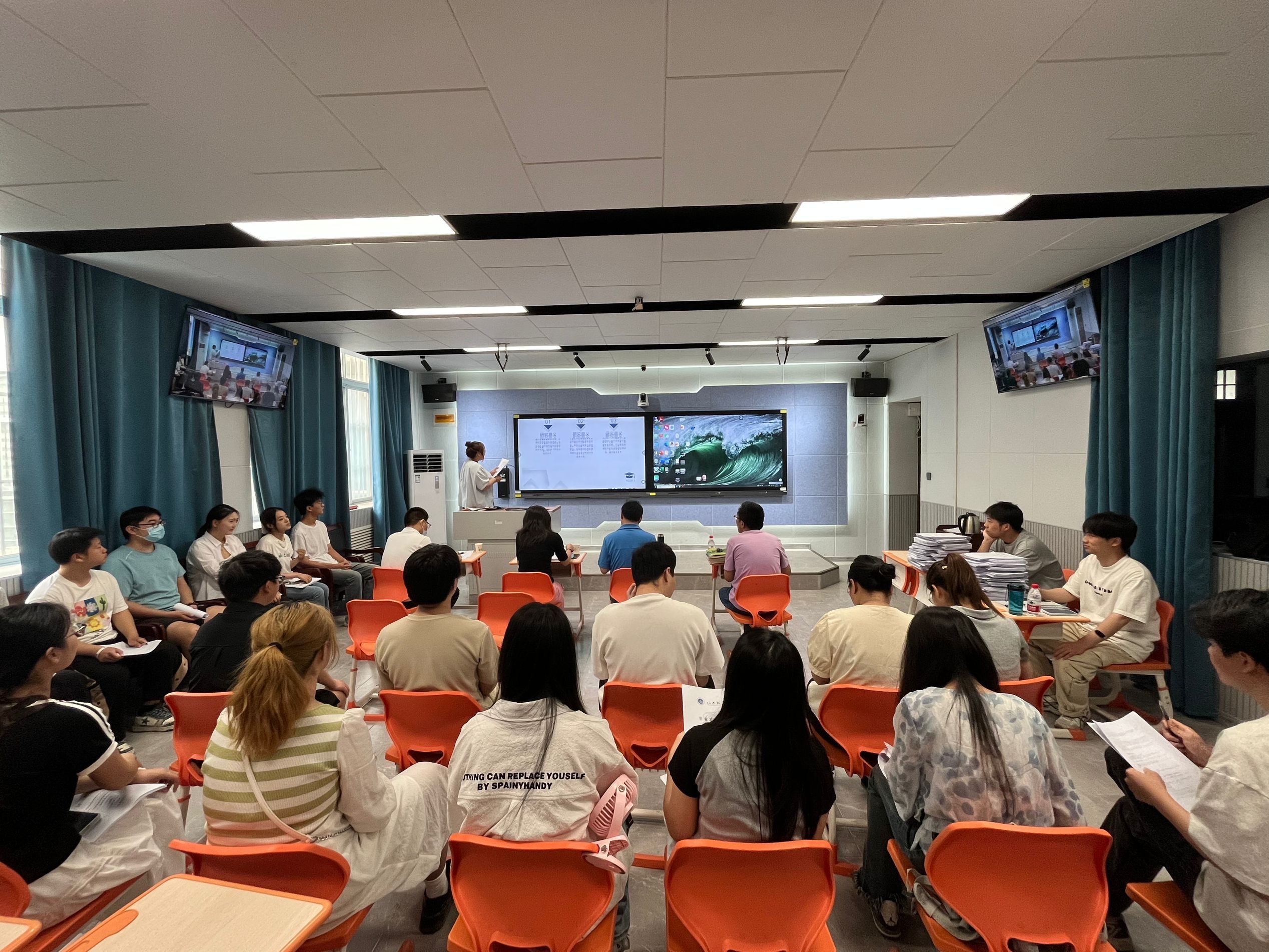 答辩工作分为PPT阐述和提问两个环节。学生先以PPT展示形式对毕业设计核心内容进行汇报,然后逐一回答评委提问;答辩秘书实时详细记录并留存答辩资料;评委组老师以认真严谨的态度听取答辩学生的汇报,考察学生对专业知识技能的掌握水平和理解程度,提出了具有针对性的指导意见和修改建议,帮助学生进一步完善毕业设计(论文)。整个答辩过程组织严谨,规范有序,取得了良好效果。