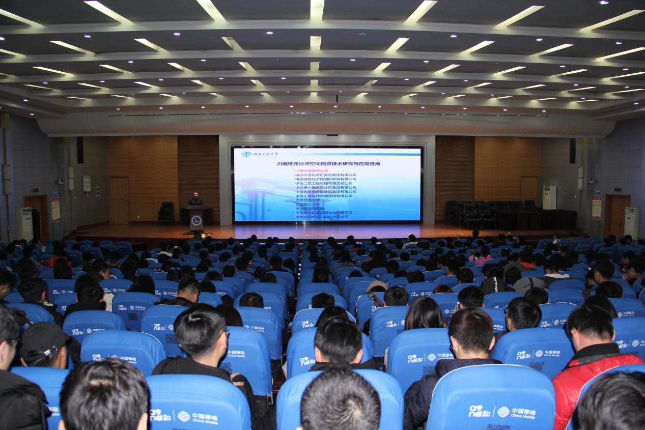(通讯员 周鹏超)2019年12月16日,西南交通大学朱庆教授应邀在学校行政楼学术报告厅举行“川藏铁路的地理地质立体勘察与集成表达研究进展”学术报告,测绘学院有关领导、专业教师、学生四百余人聆听讲座,报告由院长张宏敏主持。朱庆教授通过亲身的经历讲述川藏铁路有着极端的地质条件,其中地质灾害频繁、生态环境脆弱、板块活动强烈等等因素对常规的线路勘测方式造成了极大挑战和不利影响。基于铁路数字化选线系统建立川藏铁路工程线路走向区域的工程地质虚拟环境模型,可以利用三维工程地质虚拟环境逼真地展示川藏铁路途径的各种不良地质灾害,同时建立川藏铁路线路成果管理数据库系统,可以高效的管理设计过程中产生的庞杂成果,基于川藏铁路设计过程中产生的众多线路设计,利用Access平台和VBA设计了线路成果数据库系统,对线路成果的管理能提供极大便利等一些川藏铁路的地理地质与与广大师生进行了深入探讨,现场气氛热烈,不时响起热烈的掌声,在阵阵掌声中朱庆教授结束了他的报告。
