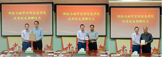 随后,测绘学院举办了校友捐赠仪式,巩永帅、刘聚杰、曹杰等校友纷纷行动,为学院的建设添砖加瓦,共计捐赠了两个软件和一个案例库,价值50多万元。