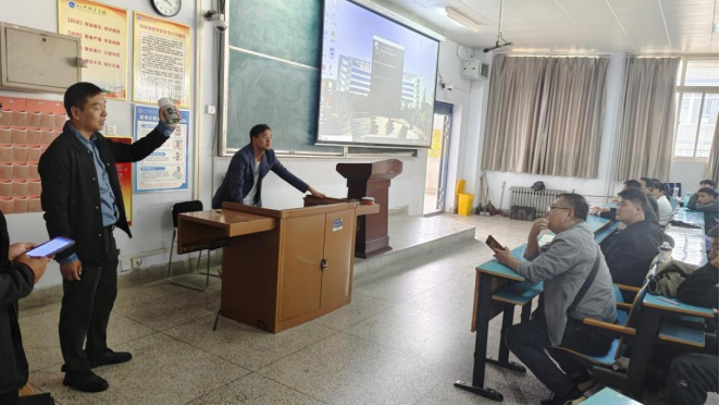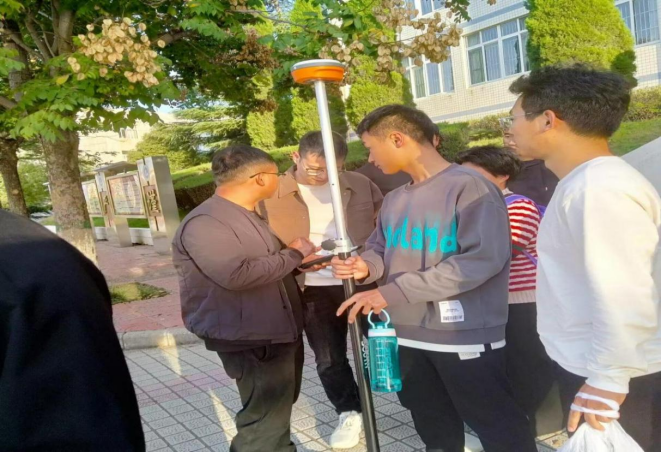 在设备展示环节,刘经理一行展示了激光RTK、星地一体RTK、SLAM-K120手持式三维激光扫描仪等仪器设备的实操过程,并邀请在场师生进行了亲身体验。随后,我院师生就仪器设备的参数设置、测量精度和适用场景等问题与刘经理一行展开了深入的交流与探讨。