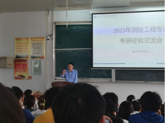 (通讯员:赵苗兴 黄 兴)为了精准帮助我院测绘工程专业大三学子进一步了解考研相关信息、明确考研方向、获取学习经验。2023年4月19日下午14:30,我院测绘教研室在5#C416教室举行2023年测绘专业考研经验交流会。会议邀请了2019级测绘工程专业李寒冰、袁俊俨、侯禹豪、郭继晓等十二位优秀学子分享考研经验。我院院长高松峰、测绘系主任杨蕴、辅导员李丹参加了本次会议,会议由李丹主持。