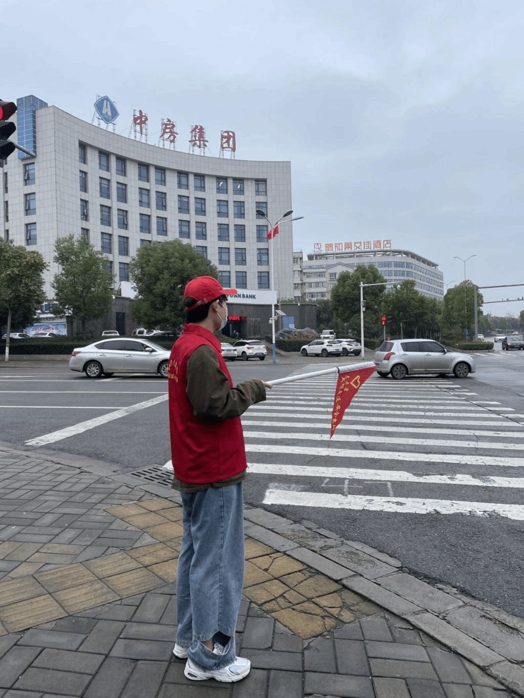 从早上7点开始,志愿服务团分为6组开展志愿活动,每组4位志愿者。执勤过程中,志愿者手持小红旗站在人流、车流最为集中的大香山路与祥云路交叉口进行文明交通引导;通过劝阻横穿马路、乱闯红灯等不文明行为,并对违反交通规则的行人进行劝阻,纠正其不文明行为,教育引导广大市民遵守交通法规,文明行路、行车。为广大市民营造一个平安出行的环境。