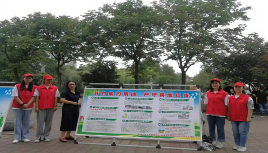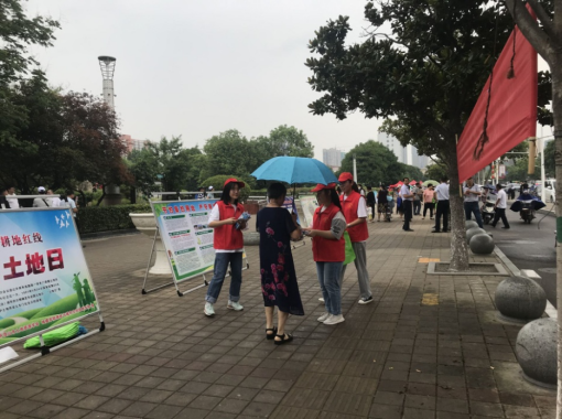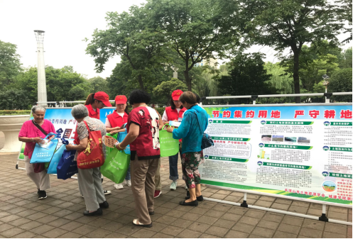 宣传团成员们在平顶山市鹰城广场建立全国土地日宣传地点,通过摆放宣传展板、发放宣传资料和现场宣讲政策等方式进行宣传,现场发放《自然资源管理知识100问》、《土地管理法》宣传手册、国土资源知识100问、环保袋等多种宣传品共计500余份。活动现场就市民关心的未来土地政策主要方向、宅基地管理、基本农田保护等方面的热点、难点问题耐心细致地进行了现场解答,得到了广大市民的一致好评。