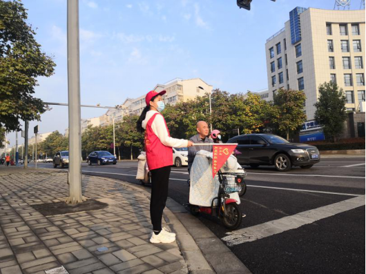 10月19日上午7:30起,我院志愿者在交警的带领下,在平顶山市新华区祥云路与大香山路红绿灯路口引导市民文明出行。活动过程中,志愿者们身穿红色文明马甲,手拿文明交通小红旗,坚守岗位、规范执勤,志愿者利用疏导旗协助交警劝导行人遵守交通规则,引导机动车拐弯时礼让斑马线上的行人,行人与车辆各行其道、有序通行,给市民出行营造畅通文明的交通环境,打造和谐安全的交通秩序。