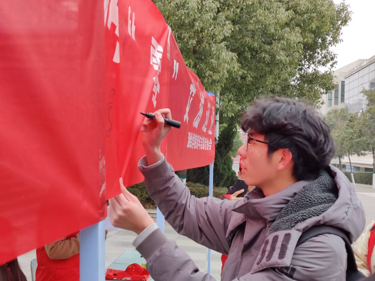 yl7703永利集团的青年志愿者邀请同学们做关于“防艾滋”的问答题,在问答过程中志愿者们为同学们讲解关于预防艾滋病的知识,解答群众咨询,通过现场讲解,让学生对艾滋病的传播途径、预防措施和正确与艾滋病人相处等方面的有了更深入的了解,有效消除学生对艾滋病的恐慌心理,引导学生给予艾滋病人更多的关爱,让更多的人认识艾滋病,参与活动的同学在做完问答题之后可以在条幅上签上自己名字并会获得由青年志愿者们手工制作的红丝带。
