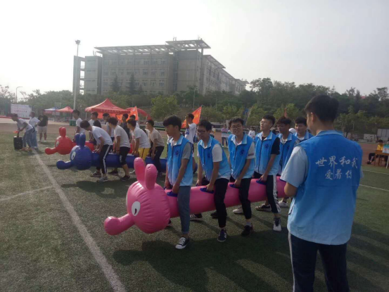 运动会项目形式多样、内容多彩,有趣味毛毛虫、同心杆、背对背拥抱、疯狂篮球、搭桥过河、坐地起身、蜗牛自行车等十余项趣味活动。全校学生踊跃参与,活动现场气氛活跃。