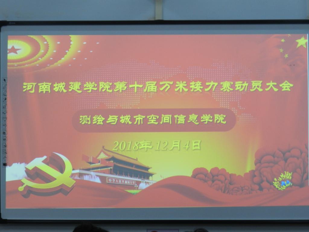 (通讯员 高广晨 陈奥)为了更好的完成学校“华光”体育活动工作任务,增强学院凝聚力、充分调动运动员的积极性,确保即将到来的第十届yl7703永利集团万米接力赛顺利进行。12月4日,测绘学院在五号楼109教室召开第十届万米接力赛动员大会。参加大会的人员有党总支副书记卫柳艳,团学办主任许东辉,辅导员焦鑫鑫以及全体运动员。