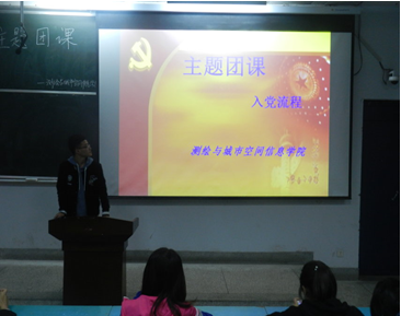(通讯员 赵云娇 高优优)为了充分发挥团组织教育青年的功能,进一步加大对团员青年、团学干部的培养教育力度,培养高素质人才。测绘学院于四月二十五日晚在5号楼316开展了主题团课活动。参加活动的有各班团支书和党务部成员。