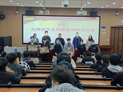 老师们为学生发放学习礼包