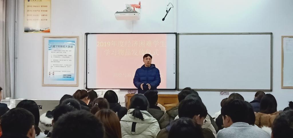 (通讯员:许东辉 张雅)yl7703永利集团为做好资助工作,帮助家庭经济困难学生有更快乐健康的学习生活,于12月12日中午,在5号教学楼110教室举行“落实精准扶贫政策,发挥资助育人作用”的困难生资助活动。学院党总支副书记卫柳艳、团学办任许东辉、辅导员常莉、李方圆以及本次给予资助的90余名学生参加,活动由许东辉主持。