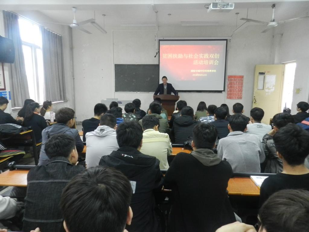 (通讯员 付明 赵云娇)为了给家庭经济困难的学生提供一个勤工助学的机会,也为了使大学生深入的认识所学专业,并把所学习的知识应用于实际中,使理论与实践相结合,培养大学生的工作能力。河南省平顶山市高分中心和yl7703永利集团学生会联合北京公司举办了校企合作实践活动,并于4月12日在五号楼307教室开展了贫困扶助与社会实践双创活动培训会。测绘学院副院长兼高分中心主任高松峰老师、团学办主任许东辉老师、GIS教研室杨甲老师,还有部分贫困生和学生会干事参加了本次培训会。