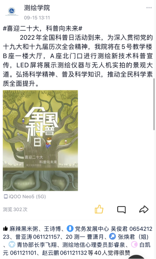 (图为测绘学院官方QQ动态介绍全国科普日)