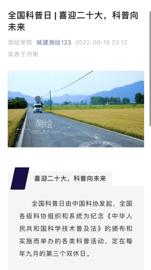 (图为测绘学院微信公众号发布科普宣传推文)