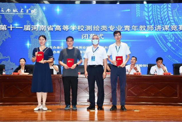 (通讯员:徐花蕊)7月10日上午9时,第十一届河南省高等学校测绘类专业青年教师讲课竞赛在我校学术报告厅圆满落下帷幕。河南省测绘学会副理事长、秘书长周学军,测绘教育与科普工作委员会主任阎晓东、副主任翟翊,河南理工大学测绘学院院长魏峰远,黄河水利职业技术学院测绘学院院长陈琳,河南工程学院蒋瑞波教授,我校测绘学院党委书记米启超、院长高松峰,南方测绘河南分公司副总经理王小刚等出席闭幕式,闭幕式由陈琳主持。