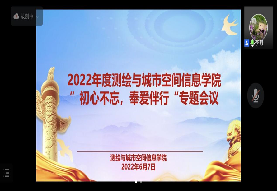 (通讯员:李 丹 王林鑫)为全面贯彻落实国家资助政策,深入了解家庭经济困难学生的实际情况,充分发挥学生资助的导向和育人功能,激励广大学生担当时代使命、奋发自强、成长成才。测绘学院于67日下午召开“初心不忘,奉爱伴行”暑期家庭经济困难学生走访和国家助学贷款调研活动线上专题会议。团学办副主任常莉、资助专员李丹、辅导员李磊磊、李方圆、赵苗兴、郭军学及事务中心助理参加了此次会议。