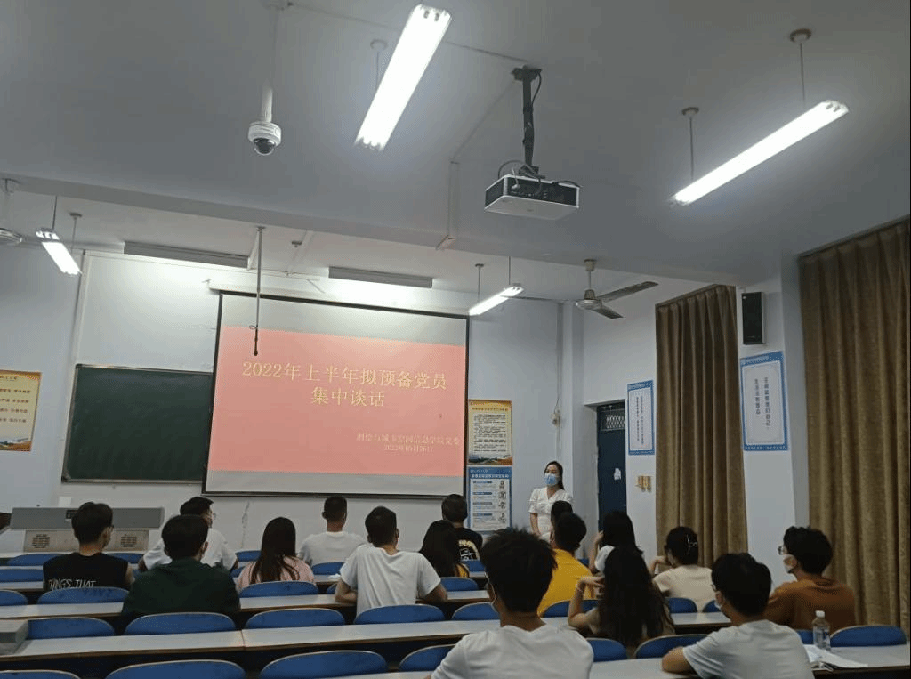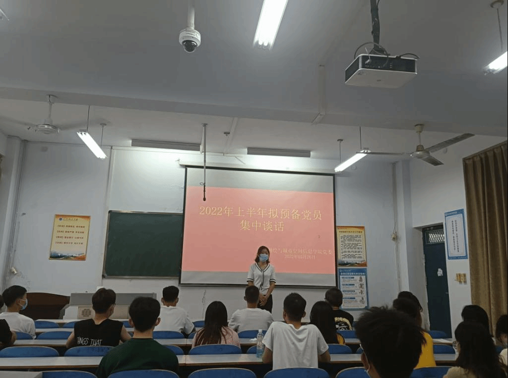 (通讯员:吴俊君)为落实党员组织发展程序,提高新党员的政治理论水平和思想觉悟,进一步端正入党动机,严格把控党员发展质量,我院党委于2022年05月26日晚上18:30在5#B207举行了2022年上半年拟预备党员集中谈话。我院党委副书记卫柳艳开展此次集体谈话,党委组织员任昭荣出席。