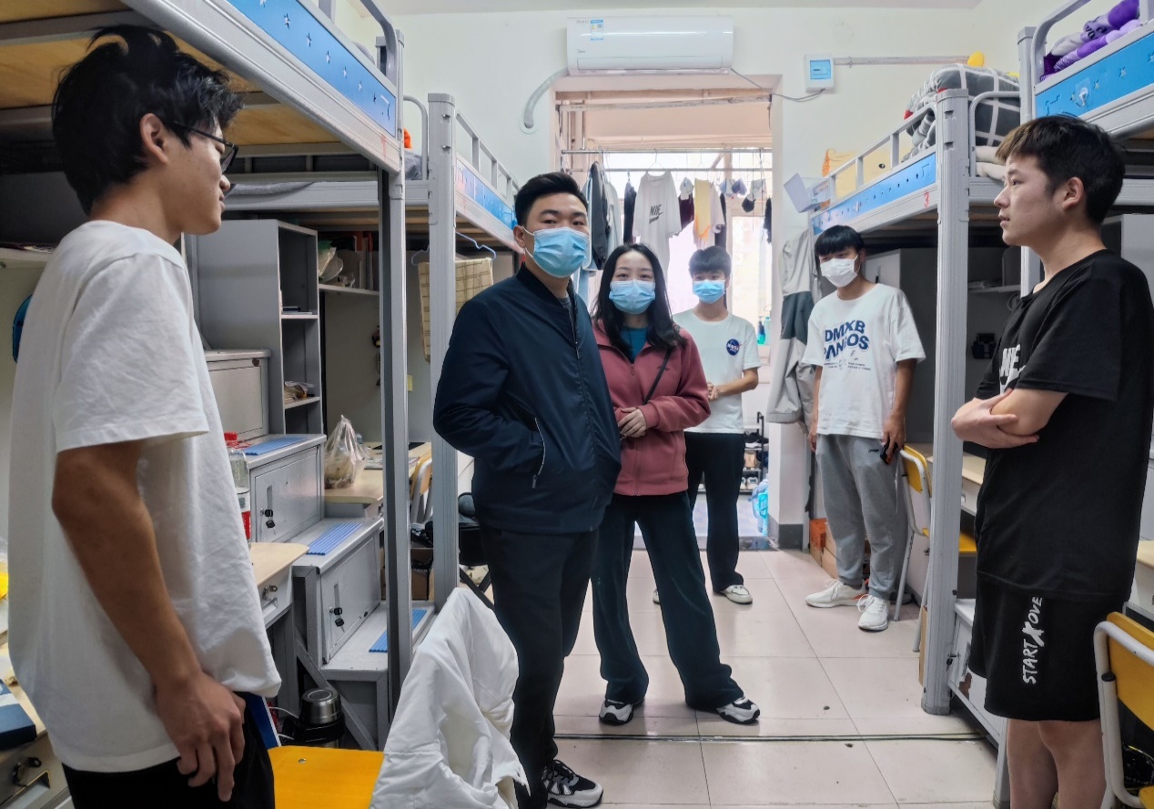 在走访过程中,团学办副主任常莉老师就学生近期线上学习、职业规划、住宿环境、作息饮食及文体锻炼等方面与同学们进行亲切交流,了解和解决学生诉求,对同学们在疫情防控期间坚持努力学习和保持良好的生活状态给予了赞扬和鼓励,鼓励同学们主动调节好心理状态,保持规律的生活作息。