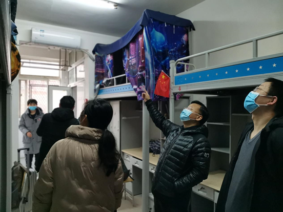 走访过程中,每到一间学生宿舍,院领导都对同学们的报到情况以及宿舍物品的还原归整情况进行了解。由于疫情防控工作的需要,假期当中,学生宿舍临时征用为隔离用房,院领导重点关注了同学们个人物品的还原归整情况,并表示:学院征用宿舍时,老师们秉着“学生的宝贝就是学院的宝贝”的理念,小心翼翼地对同学们宿舍里的东西进行包装保护,然而时间紧、任务重,难免会出现物品磕碰、弄混或未还原到位的现象,希望同学们能够理解。同学们也做出积极了回应,表示对疫情防控工作的理解与支持。米书记赞扬测绘学子有大局观念,具有新时代青年的责任担当和高尚情怀,学院为同学们的理解、配合和支持感到骄傲和自豪。