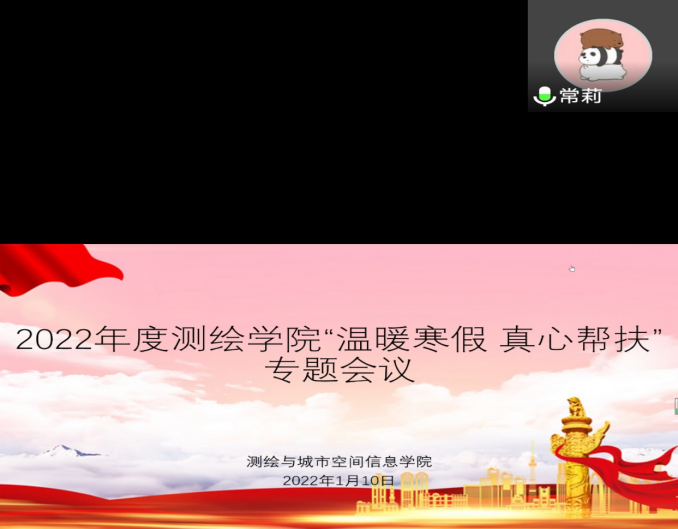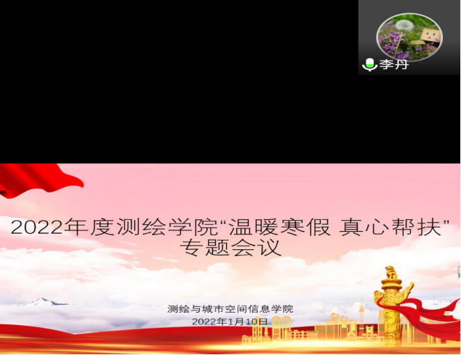 (通讯员:曾亚涛 何沛梓)寒假已至,温暖仍行。为进一步贯彻落实党和国家的资助政策,了解困难学生家庭现状,确保各项学生资助政策落实落细,让家庭经济困难学生度过一个温暖祥和的寒假,yl7703永利集团于1月10日上午举行了“温暖寒假 真情帮扶”专题线上会议,为即将开展的寒假温暖帮扶专项活动作出细致安排。团学办副主任常莉、辅导员李丹、李磊磊、李方圆、赵苗兴、郭军学及事务中心助理参加了此次会议。
