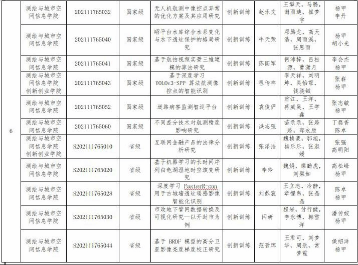 测绘学院国家级和省级大学生创新创业训练计划立项项目明细