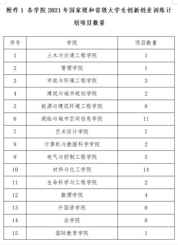 我校2021年国家级和省级大学生创新创业训练计划立项项目数量