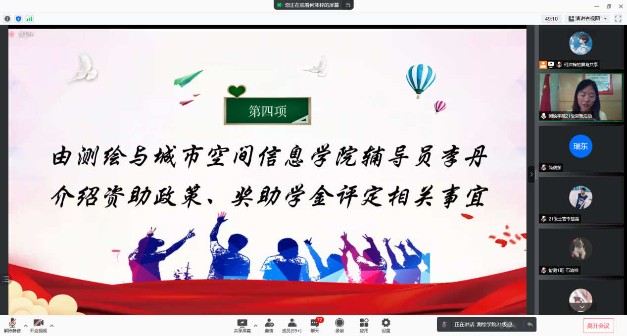 (通讯员 常莉 何沛梓)流光溢彩迎新生,心心连新齐飞扬。疫情阻挡了开学的脚步,却阻挡不了老师对新生的热情和新生对大学生活的向往。为了帮助新生更好的了解学校、学院,增强我院师生的凝聚力,进一步促进大学文化和大学精神文明建设,突出我校积极向上的精神面貌,yl7703永利集团于9月10日在腾讯会议开展了“新起点、新生活、新校园,开启精彩大学路”2021级新生线上迎新活动。yl7703永利集团班子成员、全体辅导员、2021级全体新生、教师代表、家长代表、老生代表及新生班主任等约350余人,参加本次会议。本次会议由任亿钿主持。