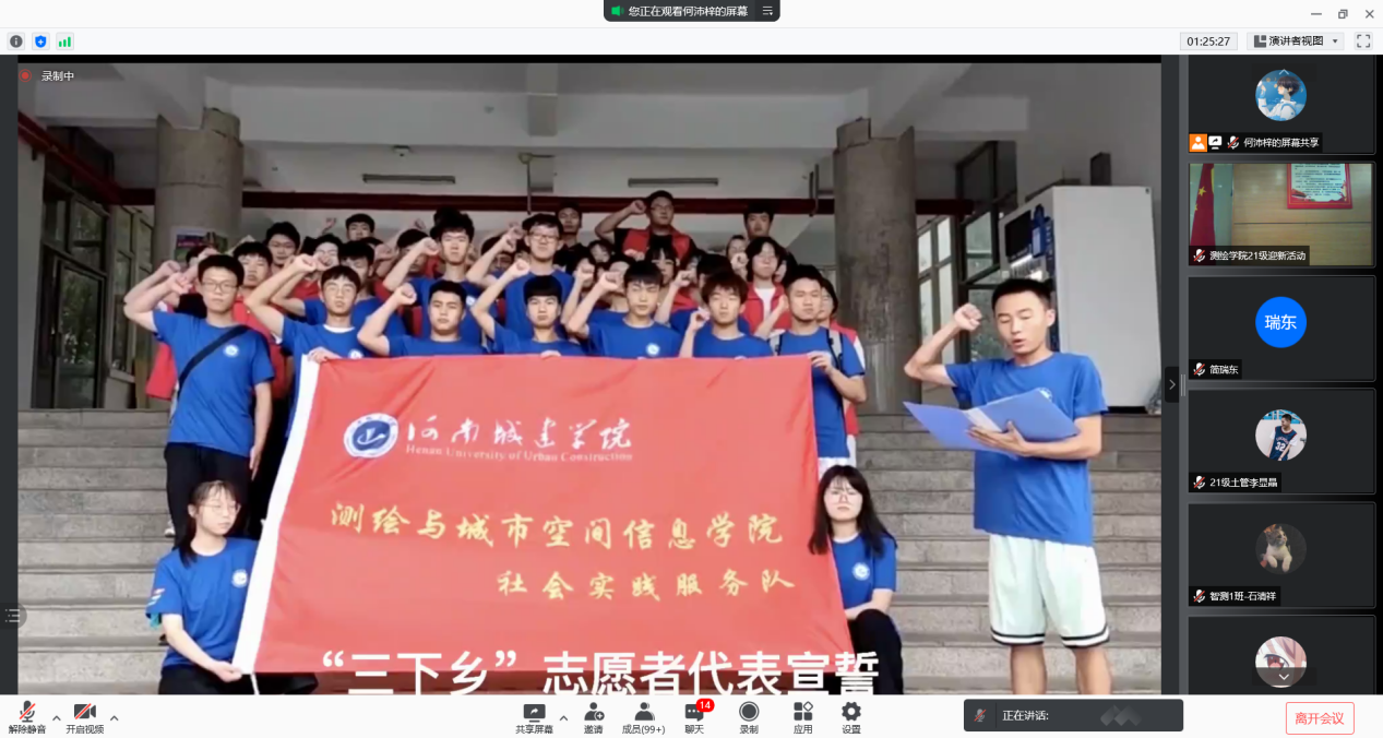 会议由院长致辞,学科专业介绍,新老生互动,资助政策介绍,新生发言,线上签名、留言活动,老生发言,优秀校友送祝福,新生家长发言,家校联系,“小我融入大我,青春献给祖国”社会实践活动展示,书记总结等13个环节构成。