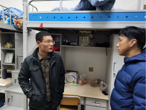 许老师认真查看了学生的住宿情况,针对宿舍卫生,大功率用电器进行了细致的检查,并对宿舍楼栋中存在的问题进行了指正,还悉心听取了学生的意见和建议,受到了同学们的热烈欢迎。在与学生交谈中,许老师勉励大家珍惜大学时光,刻苦学习,提高素质,并叮嘱学生外出或就寝时门窗一定要关好,贵重物品要妥善保存,生活上有需要解决的问题要及时向学院反映。检查过后,许老师给学生干部对以后学生宿舍工作明确提出几点要求,要成立宿舍委员会并制定出相关方案,举行趣味性活动来增加同学们之间的友谊,将宿舍考勤也作为平时考核的一项,让同学们认识到宿舍检查的重要性。