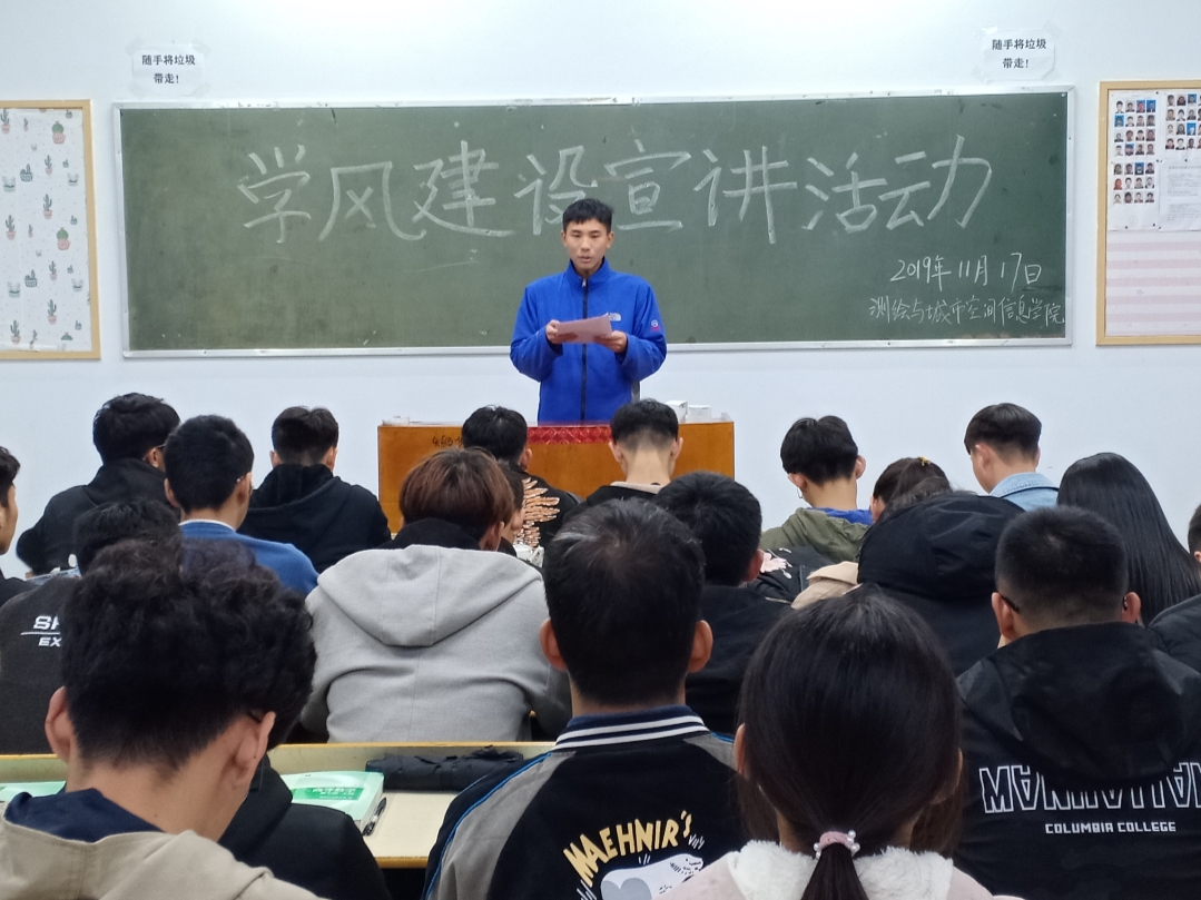 (通讯员:李方圆 陈奥)为进一步广泛宣传学风建设的意义和重要性,增强同学们对学风建设的认识,使同学们积极主动参与到各项学风建设活动中,我院于11月17日晚在大一各班进行学风建设宣讲活动,由各班班委为大一学生进行学风建设宣传。