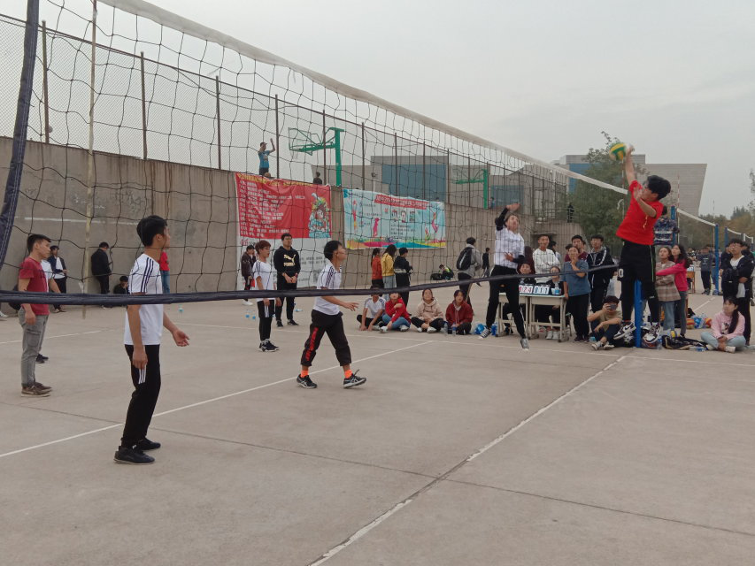我院排球成绩显著,此次与艺术学院的比赛更像是一场历练。比赛还没开始,赛场上早已人头攒动。各班的观众也在赛场旁边翘首以盼。随着阵阵鼓声和裁判员的哨响,激烈的排球比赛就此展开。比赛伊始,双方球员就立刻投身于紧张的比赛之中,各自使出自己的排球绝技,拦网、扣球等精彩的动作历历在目,团队之间也完成了一个又一个完美的配合,令在场的观众都喝彩不已。场上每一位运动员都在拼尽全力地比赛,每一位拉拉队员都在激动尽情地呐喊,每一位在场观众都在专心投入地观赛。惊心动魄的比赛持续进行着,落后的一方并不气馁,通过暂停时间重新制定战略,互相击掌喝彩,增强彼此之间的配合,表现出了顽强拼搏的进取精神。领先的一方也没有骄傲,细心的总结经验,保持着积极的劲头大步向前,比赛迎来了赛点,双方的观众和拉拉队呐喊着助威口号,击鼓手也时刻不停歇保持着节奏,最终我院取得了本次比赛的胜利。