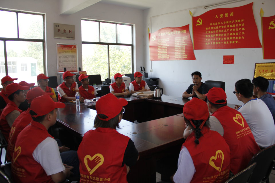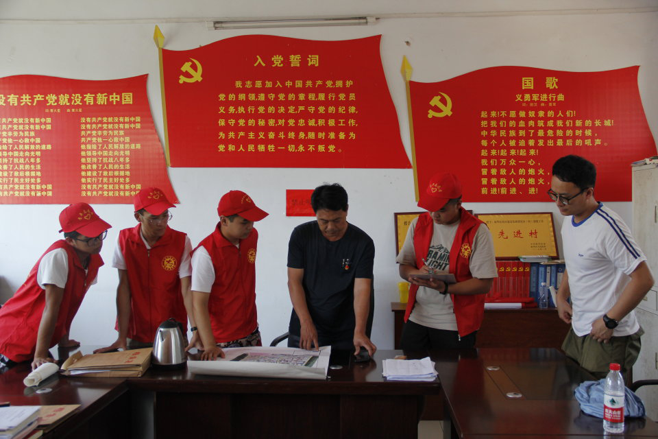 会议上,马伟书记先与同学们分享了他的工作经验和感受,并提出一个好的项目的顺利进行需要一系列条件,并叙述了对村庄下一步具体规划的设想和要求。接下来由服务队代表向马伟书记详细介绍了此项三下乡项目的进展情况和开展目的,并针对村庄建设提出了一些问题和建议。最后大家一起讨论了项目的具体开展方式和下一步进展要求。会议圆满结束,大家合影留念。