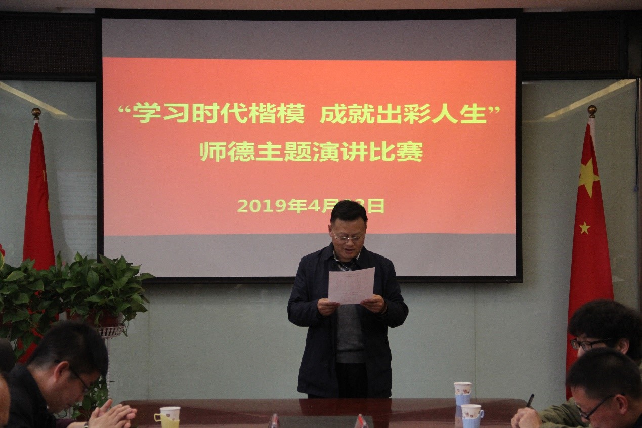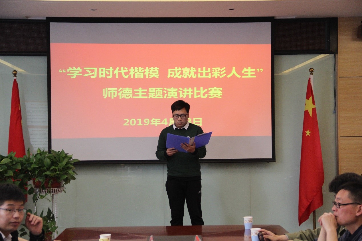 (通讯员 徐花蕊)为深入贯彻落实学校《关于开展2019年“学习时代楷模,成就出彩人生”师德在主题教育活动的通知》的文件精神,进一步增强广大教师教书育人的责任感和使命感,真正成为有理想信念、有道德情操、有扎实学识、有仁爱之心的“四有”好老师,不断提高我院教育教学质量水平。4月23日,我院在5#B209会议室举行了“学习时代楷模,成就出彩人生”师德主题演讲比赛。