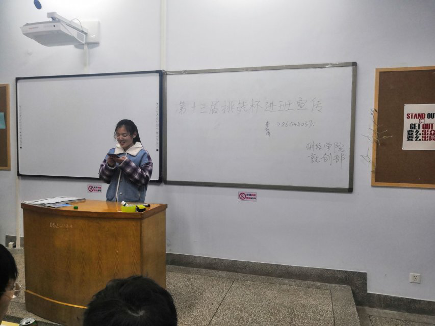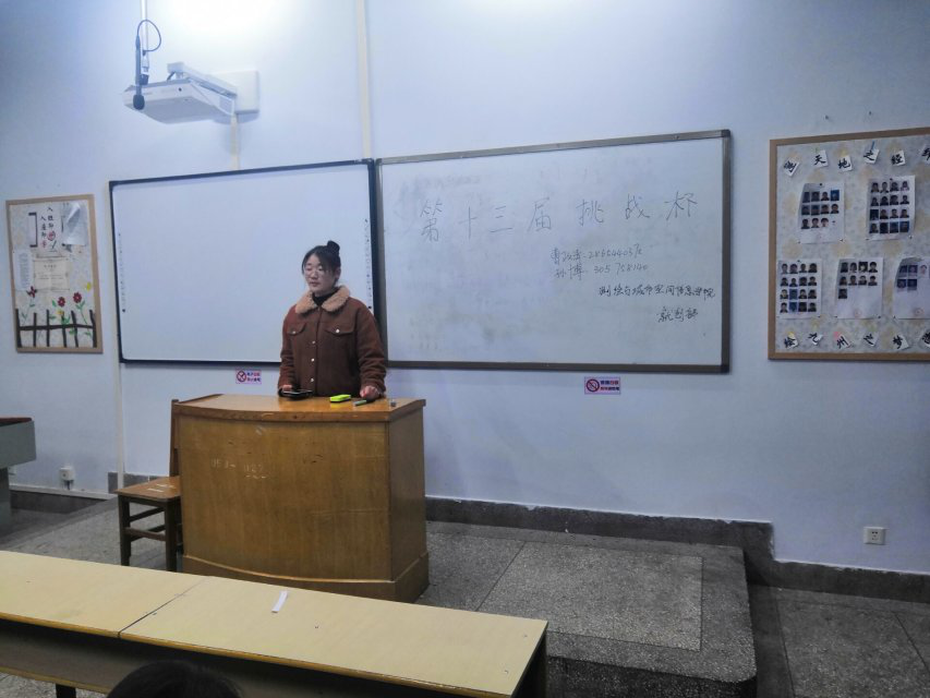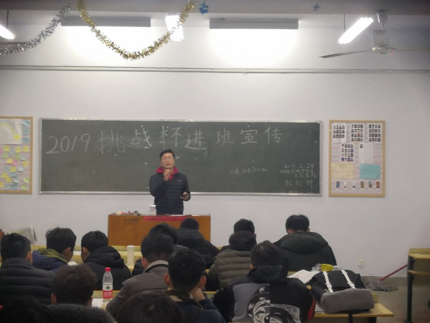 (通讯员:李顺 曹政清)为宣传校“第十三届挑战杯”,增强同学们的积极性,使同学们满怀激情的参加挑战杯活动,测绘学院就创部于2019年2月28日在我院教学楼大一各班教室进行挑战杯进班宣传活动,参加本次活动的有就创部全体干事以及大一各班同学。