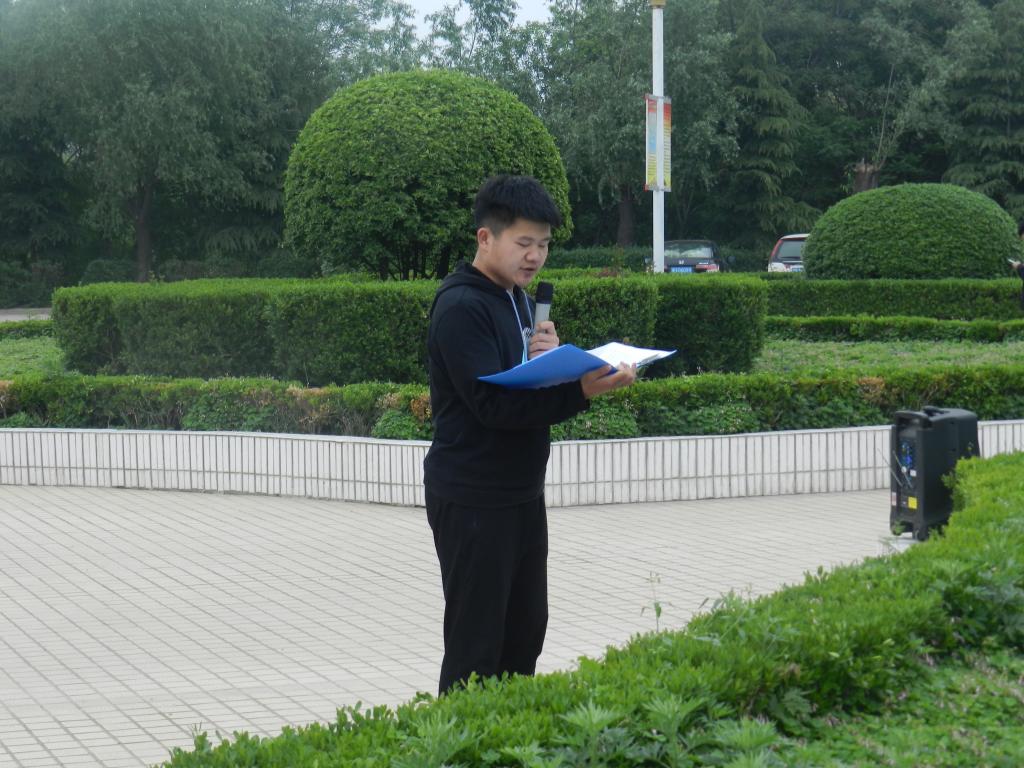 国旗护卫队成员迈着铿锵的步伐来到了国旗台下,全场一片肃静。在激昂的《义勇军进行曲》歌声中,升旗手振臂一挥,鲜艳的五星红旗徐徐展开,在初升的阳光映照下、全院师生的注目中,迎着初升的太阳,在晨曦中迎风飘扬。升旗仪式完毕,接下来就是学生代表马德山同学在国旗下讲话,他演讲的话题是“享受过程”,他说:“知足者常乐,不知足者常进,很少有人能知道需付出多少努力才能实现心中的梦想,我们只能不断前进、前进,再前进,一万年太久我们只争朝夕! 只争朝夕,在你茫然的时候;只争朝夕,在你沮丧的时候;只争朝夕,在你懒散的时候,只争朝夕,在你还拥有梦想的时候;太阳每天都是新的,生活永远充满希望,现在就开始吧,把握每个瞬间,不要再犹豫! 珍惜每一天,享受每一天。”演讲结束后,此次升国旗仪式正式结束,同学们有序退场。