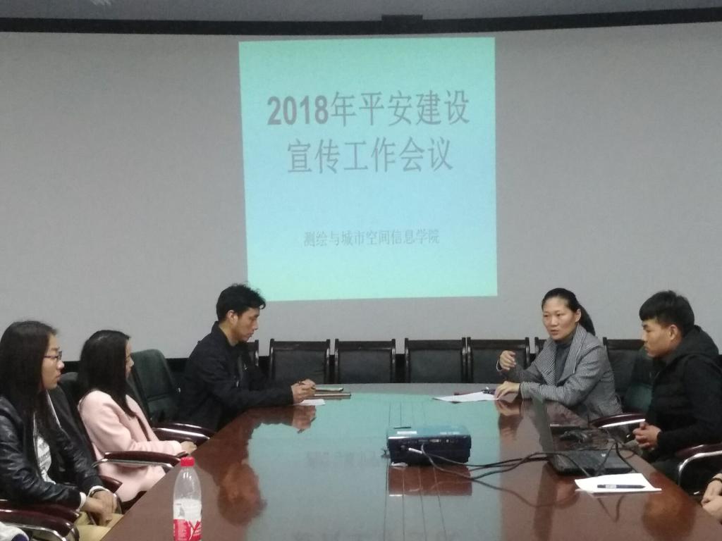 在会上,卫柳艳副书记首先回顾了我院最近在平安建设宣传月中所做的工作,及取得成绩,分析了目前的形势和亟待解决的问题,指出了今后我们需要提高和完善的方面,要求辅导员和学生干部要加强学习贯彻落实“十九大”精神,继续在学生饮食安全、人身和财产安全、宿舍安全、舆情监控、预防电信诈骗、民族宗教事务等提高意识,提升服务,为建设平安校园贡献自己的一份力量,为学校“平安建设宣传月”成功举办添砖加瓦。