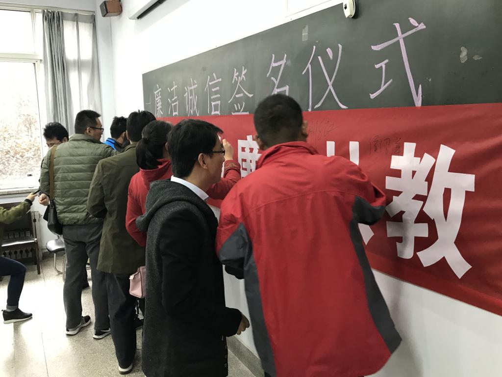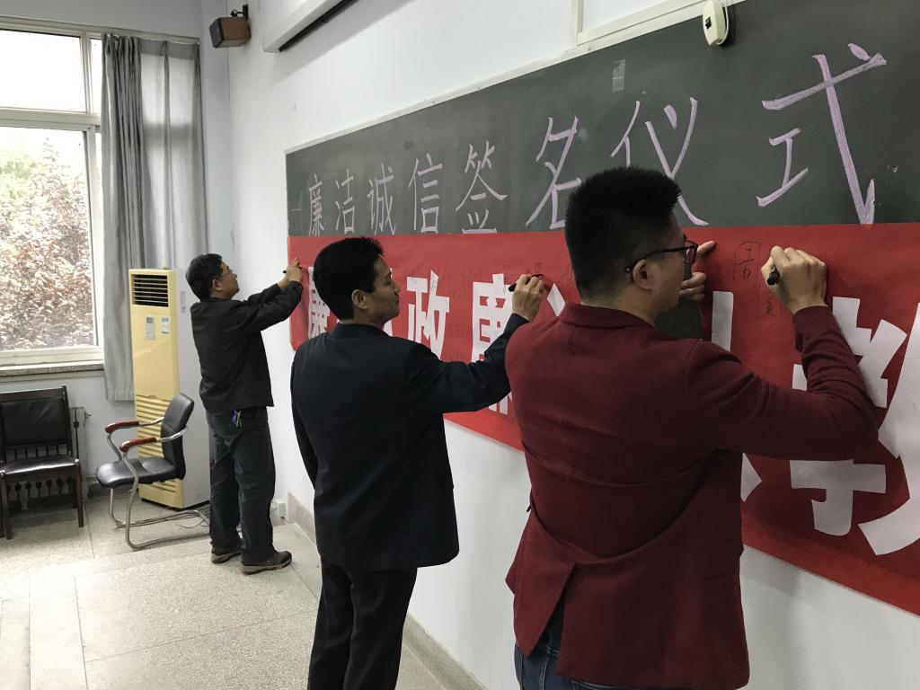(通讯员 潘传姣)10月10日下午,我院开展廉洁诚信签名仪式,全体教师在一幅“廉洁从政、廉洁从教”的横幅上庄重地签上自己的名字,此举正式拉开我院“廉政文化教育月”的序幕。